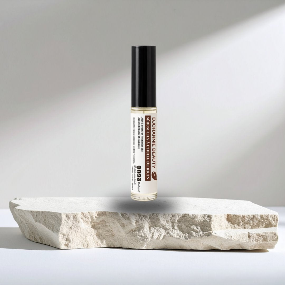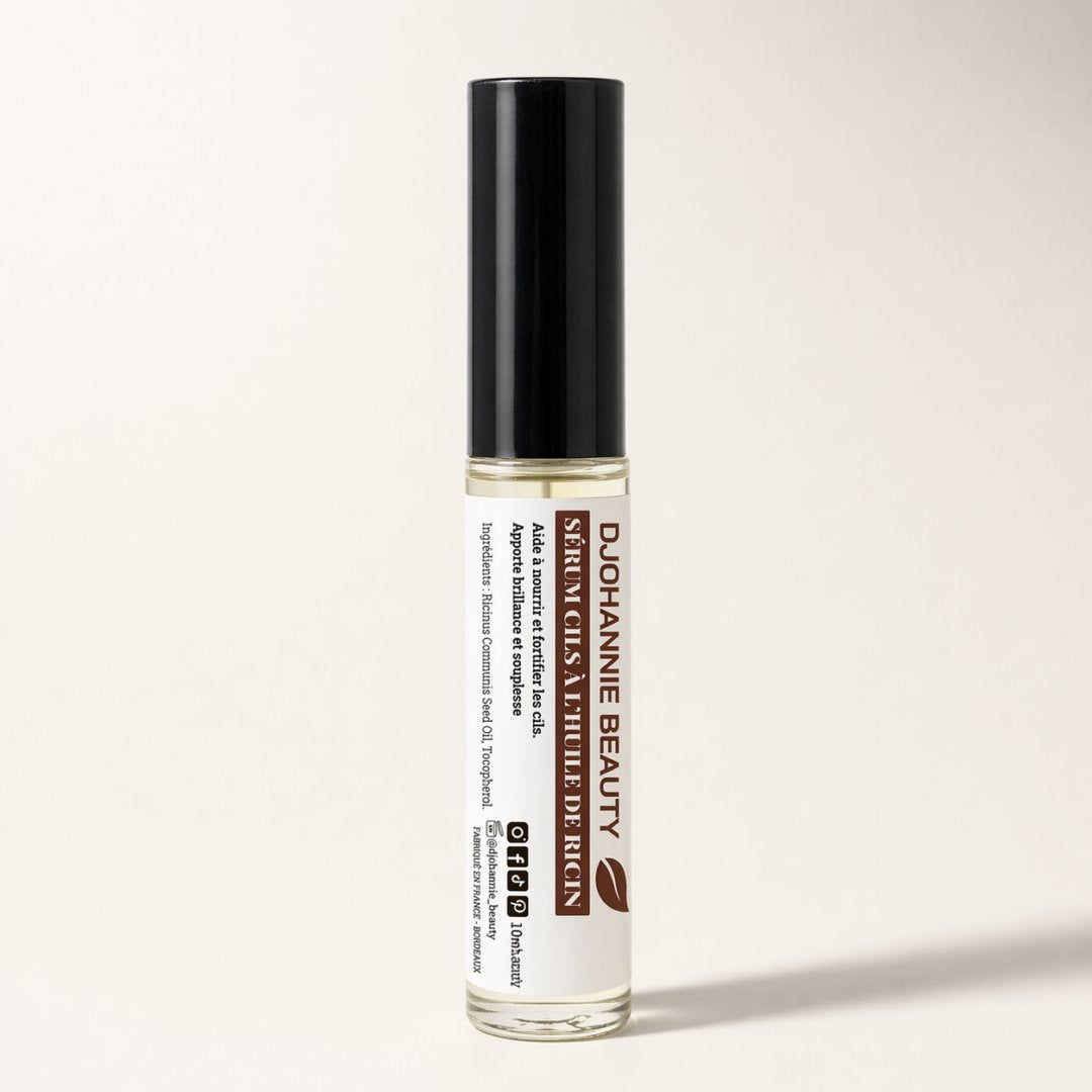L'huile de ricin est connue pour ses propriétés nourrissantes et fortifiantes pour les cheveux et les cils. Elle aide à améliorer la densité et la longueur des cils tout en les rendant plus résistants à la casse.